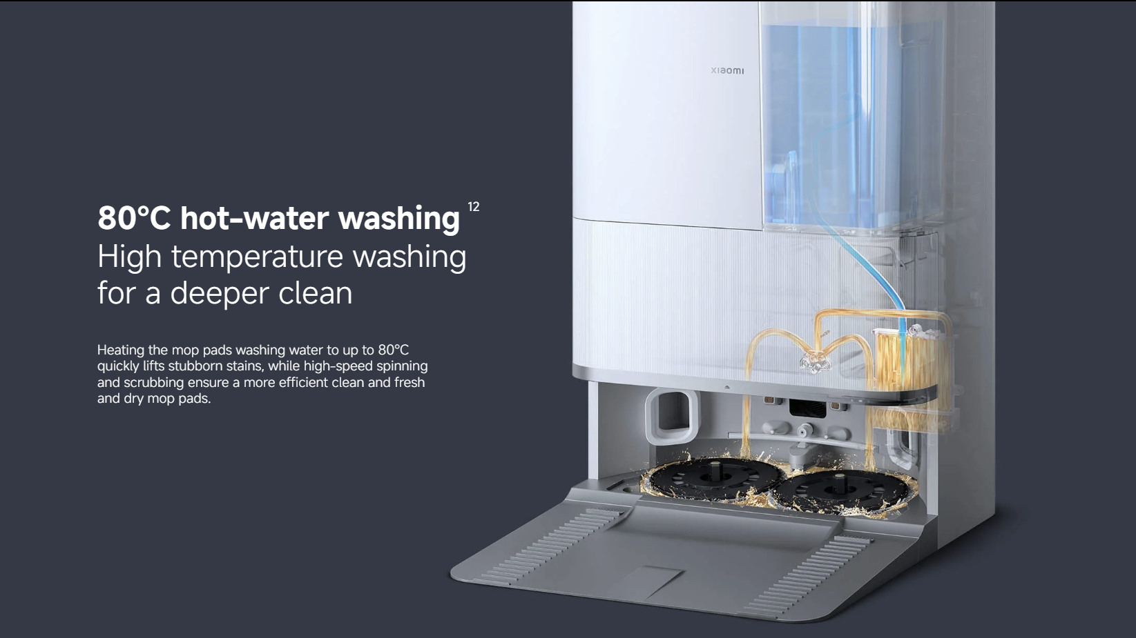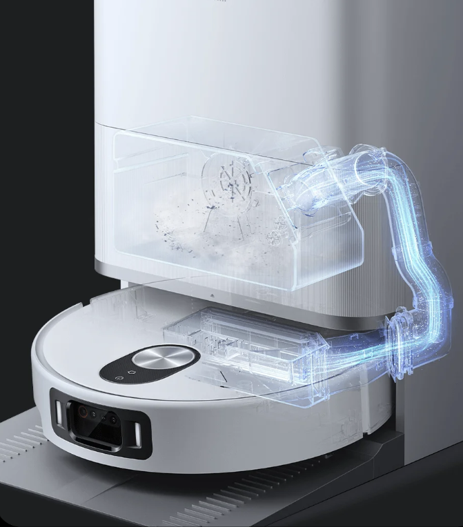 - ایستگاه تخلیه خودکار: کیسه زباله بزرگ (مثلاً ۲٫۵ لیتر) و مخزن آب بزرگ (در نسخههایی با Mop) برای نظافت بدون دخالت زیاد کاربر.