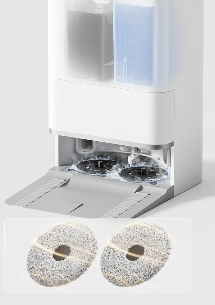 - ایستگاه داک: تخلیه خودکار زباله و شستوشوی پد + خشککردن پد (در نسخههای مجهز)